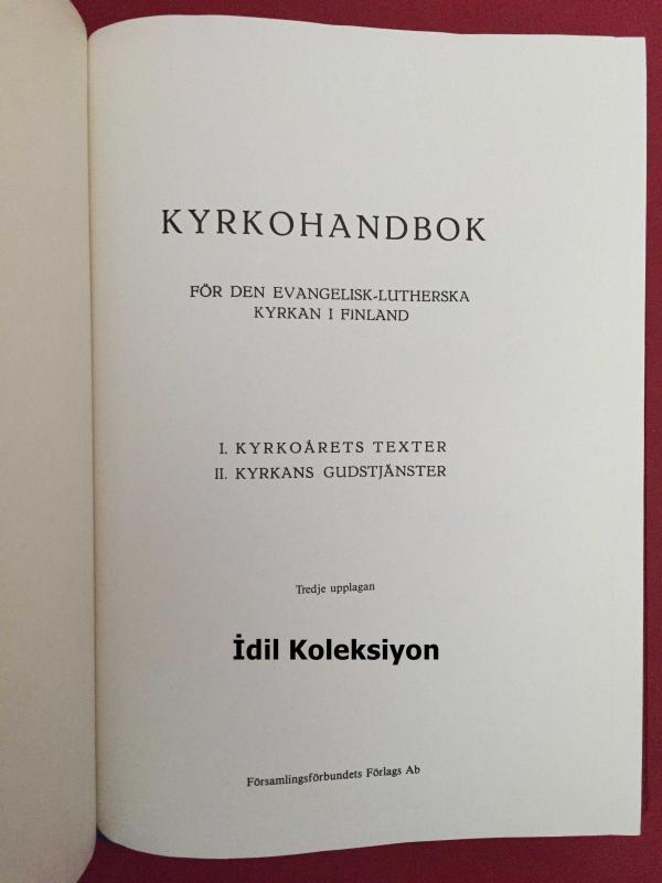 KYRKOHANDBOK - för den evangelisk lutherska kyrkan ı finland - (KİLİSE EL KİTABI - Finlandiya'daki Evanjelik Lüteriyen Kilisesi için) - Församlingsförbundeets Förlags - İsveççe Kitap adlı eser, Kitap > Din ve Teoloji > Hıristiyanlık kategorisinde İkinci El olarak satıştadır.
