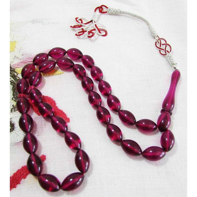 KaZaZLı ÖZEL RenK SIKMA ATEŞİ KEHRİBAR 33 Lük TESBİH......8x12mm başlıklı antika/koleksiyon objesi Türkiye menşe’lidir. 2000 ve sonrası dönemine aittir.
