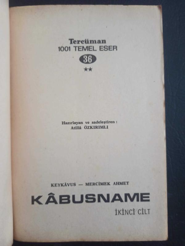 Kabusname - İlyasoğlu Mercimek Ahmed - Tercüman 1001 Temel Eser Yayınları - Türkçe Kitap Yıpranma, sararmalar ve yırtılmalar zamana bağlı olarak görülebilir.