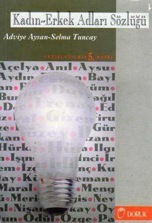 Kadın Erkek Adları Sözlüğü - 1997 Yılı 5. Baskısı, Adviye Aysan - Selma Tuncay tarafından kaleme alınmıştır. Kitap 1997 yılında Doruk tarafından [İstanbul] 9789755530147 ISBN kodu ile yayınlanmıştır. Satışta olan kitap, yayınevinin 5. baskısıdır. 344 sayfadır. Sayfa bilgisi Avrupa Enzo Kağıt olarak belirtilmiştir. Kadın Erkek Adları Sözlüğü - 1997 Yılı 5. Baskısı adlı eser Türkçe dilindedir.