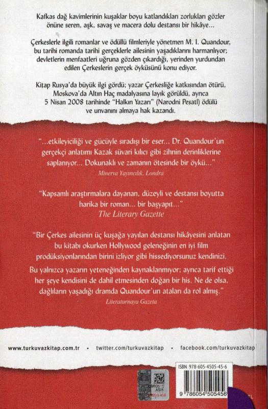 Kafkas Destanı, M. I. Quandour tarafından kaleme alınmıştır. Kitap 2012 yılında Turkuvaz Kitap tarafından [İstanbul] 9786054505456 ISBN kodu ile yayınlanmıştır. Satışta olan kitap, yayınevinin 1. baskısıdır. Bu baskının çevirisi Özge Öztürk tarafından yapılmıştır. 1.320 sayfadır. Kafkas Destanı adlı eser Türkçe dilindedir.