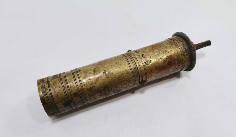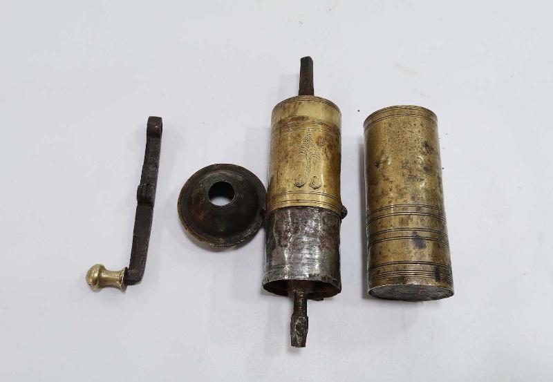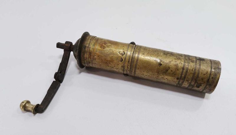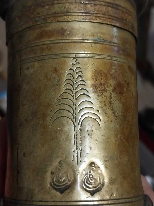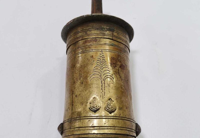 Kahve Değirmeni, ÜZERİ ÇİFT USTA DAMGALI VE HAYAT AĞAÇLI OSMANLI DÖNEMİ KAHVE DEĞİRMENİ Üzerinde hayat uzunluğunu sembolize eden hayat ağacı ve çift usta damgalı Osmanlı Dönemi kahve değirmeni. Uzunluk: 24 cm