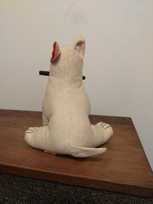 İlândaki Köpek Yıllar önce Bazı Coca-Cola Şişelerinde de görsel ve giydirme olarak kullanılmıştır.Ağzında tuttuğu özel kalemi ile birlikte tam bir koleksiyon ürünüdür.Yıllara bağlı olarak biraz kirlidir.Fakat,Çamaşır makinesinde yıkayabilirsiniz.Oturur vaziyette 18-19 Cm Boylarındadır.Sadece 1 Adettir.Diğer İlânlarımı İncelemeyi unutmayınız.