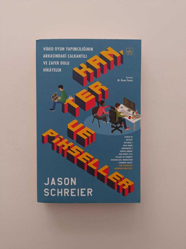 Kan Ter ve Pikseller, Jason Schreier tarafından kaleme alınmıştır. Eser Emre Aygün editörlüğünde hazırlanmıştır. Kitap 2020 yılında İthaki Yayınları tarafından yayınlanmıştır. Bu baskının çevirisi M. İhsan Tatari tarafından yapılmıştır. 280 sayfadır. Kan Ter ve Pikseller adlı eser Türkçe dilindedir.