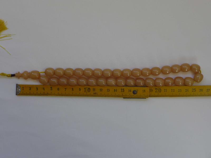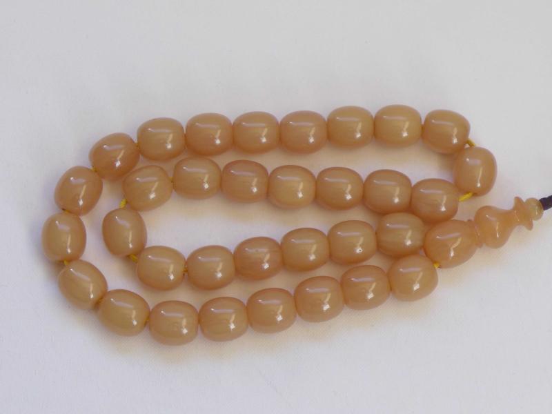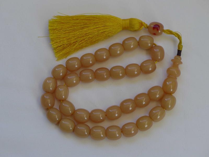 Kanayan Bağa Tesbih Yeni malzeme Sıkma kehribar, 33 habbeli, Ateş değince kızarır Usta işçilik Habbe Ölçü: 14 x 13 mm İmame Dahil uzunluk: 26.5 cm Yurtiçi Kargo ile Gönderilir