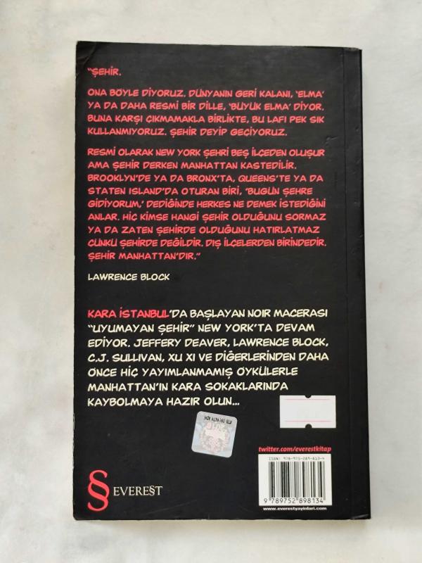 Kara Manhattan [öykü antolojisi], Ed.: Lawrence Block tarafından kaleme alınmıştır. Kitap 2010 yılında Everest tarafından 9789752898134 ISBN kodu ile yayınlanmıştır. Satışta olan kitap, yayınevinin 1. baskısıdır. Bu baskının çevirisi Berna Kılınçer tarafından yapılmıştır. 278 sayfadır. Kara Manhattan [öykü antolojisi] adlı eser Türkçe dilindedir.