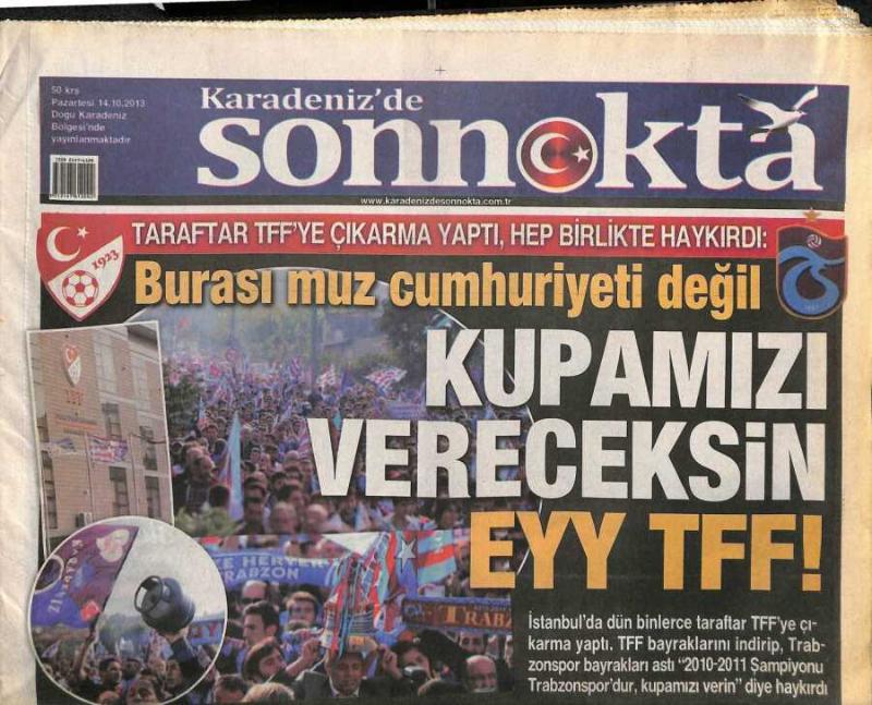 Karadenizde Son Nokta Gazetesi 14 Ekim 2013 - Trabzonspor Taraftarı Kupamızı Vereceksin Ey TFF ! GZ113151, en son 19 gün önce güncellenmiştir.