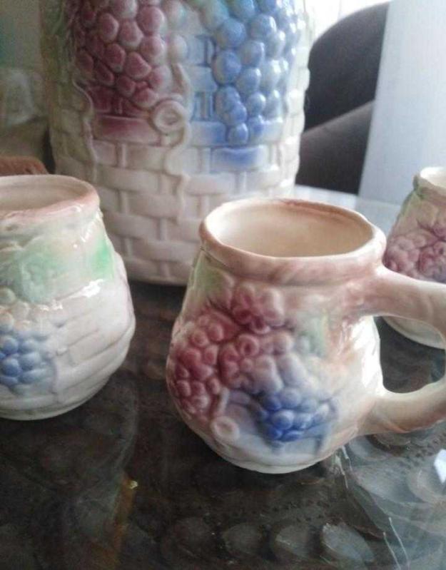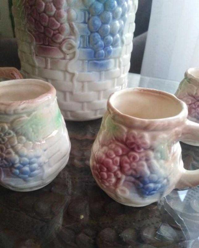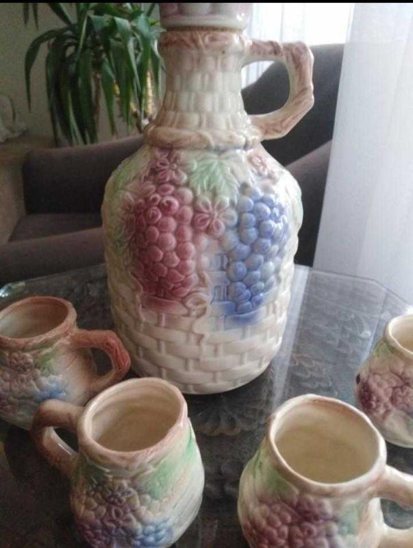 ÜZÜM DESENLİ İSTER ŞERBET İSTER LİKÖR İSTER EV YAPIMI ŞARAP İÇİN KULLANILABİLECEK KARAF SET ŞİŞESİ MANTAR AĞIZLIDIR.4 KADEH 6CM BOYUNDA ŞİŞESİ İSE 22 CM DİR.
