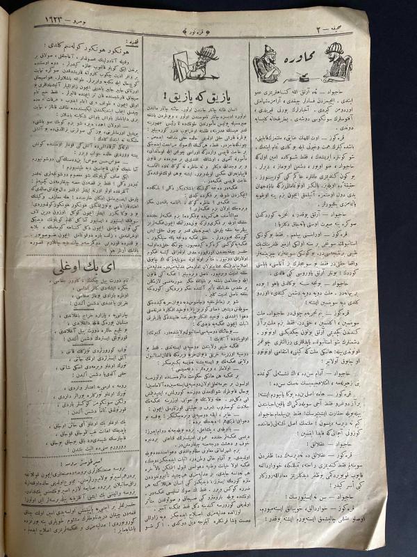 Kitap 1923 yılında yayınlanmıştır. 4 sayfadır. Karagöz mecmuası Osmanlıca 1923 tarihli NADİR KOLEKSİYONLUK adlı eser Osmanlıca dilindedir.