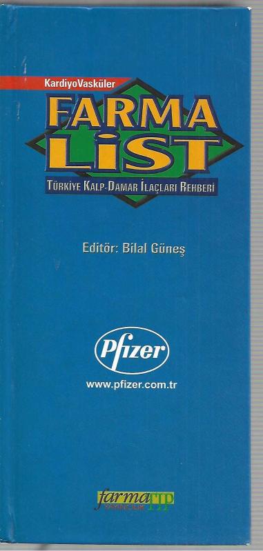 Kardiyovasküler Farmalist - Türkiye Kalp damar İlaçları Rehberi - CİLTLİ, Ed: Bilal Güneş tarafından kaleme alınmıştır. Kitap 2005 yılında Farmatıp tarafından [Ankara] yayınlanmıştır. 712 sayfadır. Kardiyovasküler Farmalist - Türkiye Kalp damar İlaçları Rehberi - CİLTLİ adlı eser Türkçe dilindedir.