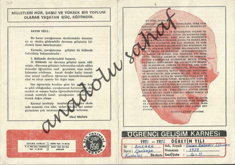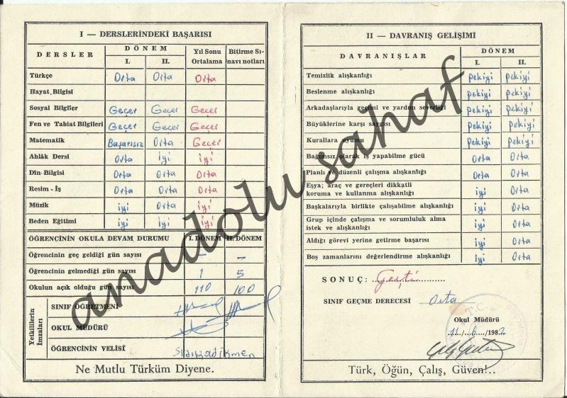 Karne: Ankara Çankaya Kurtuluş İlkokulu 1981-1982 Öğretim Yılı Öğrenci Gelişim Karnesi, en son 1 yıl önce güncellenmiştir.