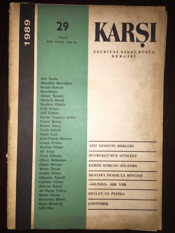 Karşı: Edebiyat, Sanat Düşün Dergisi Eylül 1989 Sayı: 29 adlı eser, Kitap > Süreli Yayınlar > Dergiler > Edebiyat kategorisinde İkinci El olarak satıştadır.