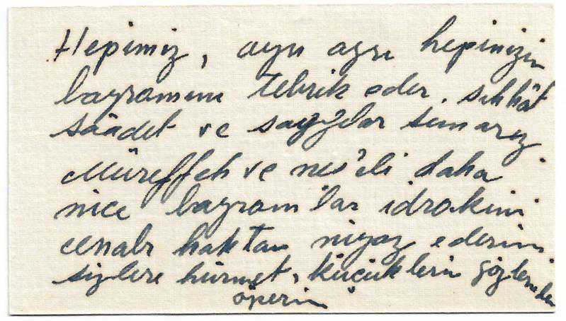 Kartvizit: A. Erem, arka yüzünde bayram tebriği var