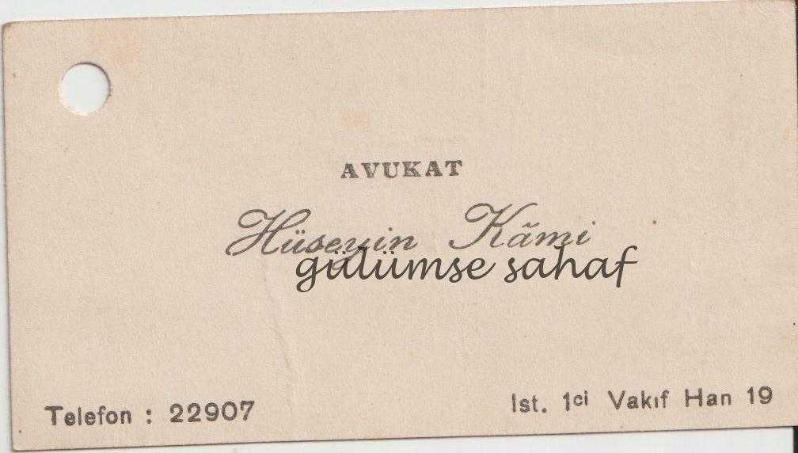 Kartvizit: Avukat Hüseyin Kami, İstanbul başlıklı ürün, Efemera, Müzik, Sinema > Belge ve Evraklar > Kartvizit kategorisi altında İkinci El olarak satılmaktadır.
