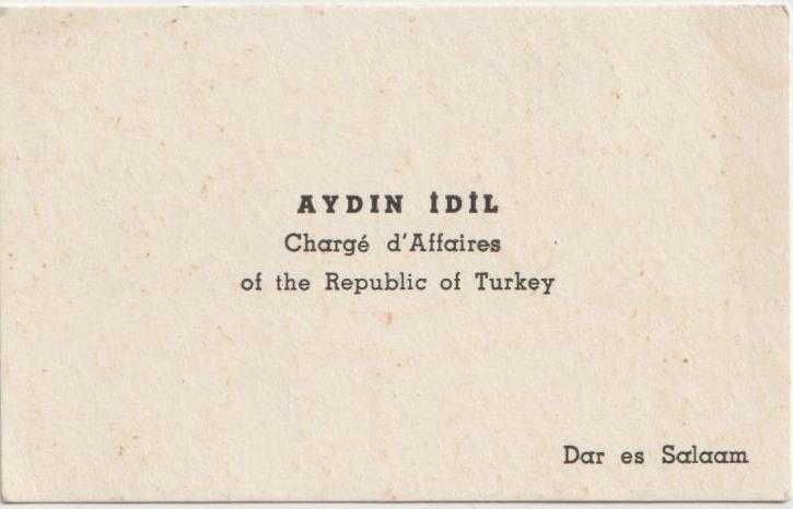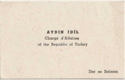 Kartvizit: Aydın İdil - Charge d'Affaires of the Republic of Turkey Dar es Salam
