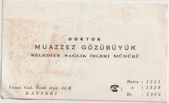 Kartvizit: Doktor Muazzez Gözübüyük - Belediye Sağlık İşleri Müdürü, Kayseri, en son 1 yıl önce güncellenmiştir.