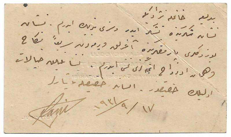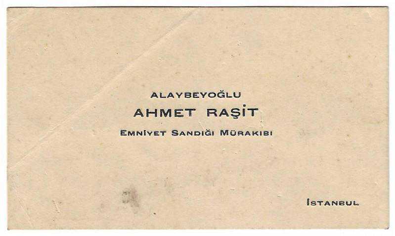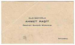 İstanbul Emniyet Sandığı Mürakıbı Ahmet Raşit (Alaybeyoğlu), arkası Osmanlıca yazılı, tarihi var, imzalanmış.