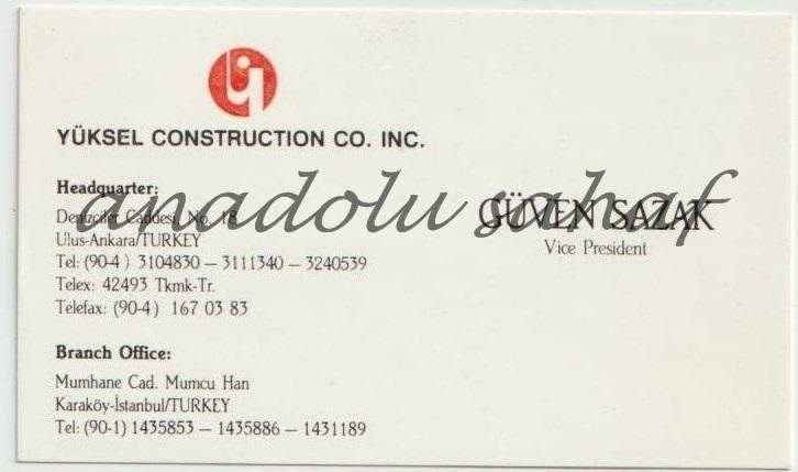 Kartvizit: Güven Sazak - Vice President / Yüksel Construction, Ankara