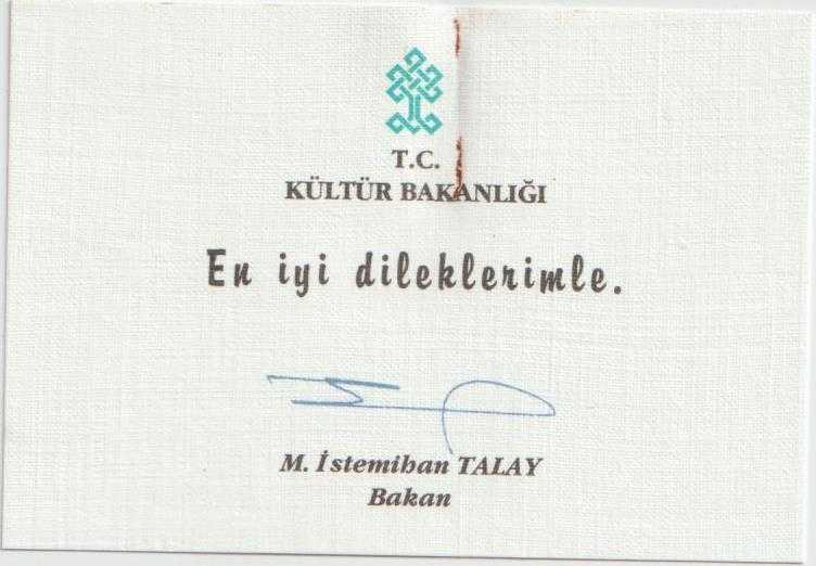 Kartvizit: M. İstemihan Talay - Kültür Bakanı, en son 1 yıl önce güncellenmiştir.