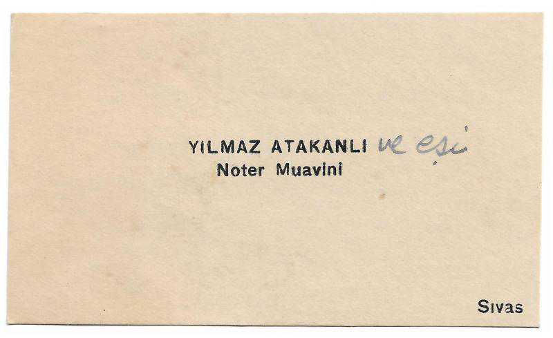 Kartvizit: Noter Muavini Yılmaz Atakanlı / Sivas, en son 1 yıl önce güncellenmiştir.