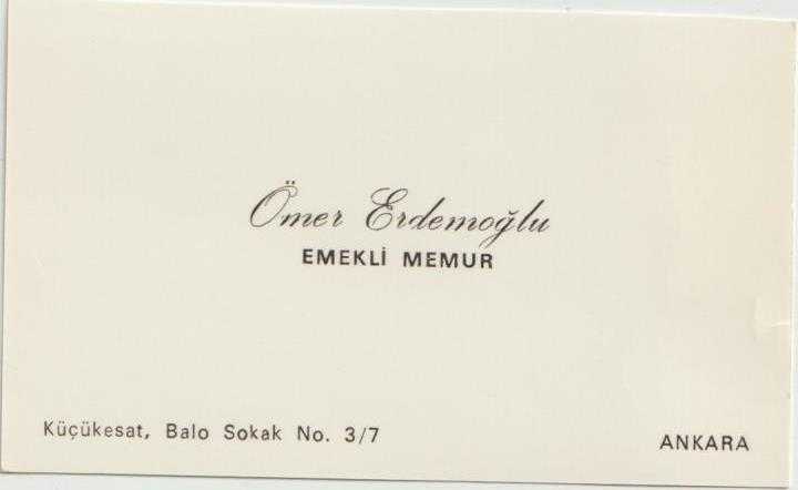 Kartvizit: Ömer Erdemoğlu - Emekli Memur, Ankara, 4 yıl önce satışa sunulmuştur.