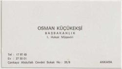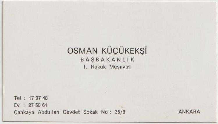 Kartvizit: Osman Küçükekşi - Başbakanlık I. Hukuk Müşaviri, Ankara, en son 1 yıl önce güncellenmiştir.