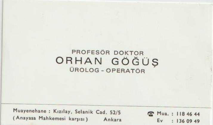 Kartvizit: Profesör Doktor Orhan Göğüş - Ürolog Operatör, Ankara, en son 1 yıl önce güncellenmiştir.