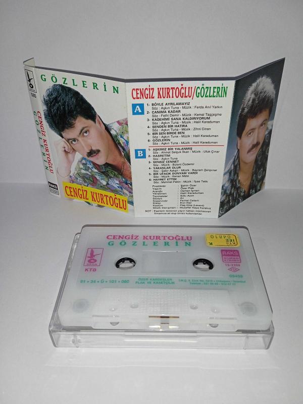 Kaset Cengiz Kurtoğlu Gözlerin albümü. orijinal Raks 1991 kemik baskı. sorunsuz çalışıyor Tertemiz koleksiyonluk., bir ay önce satışa sunulmuştur.