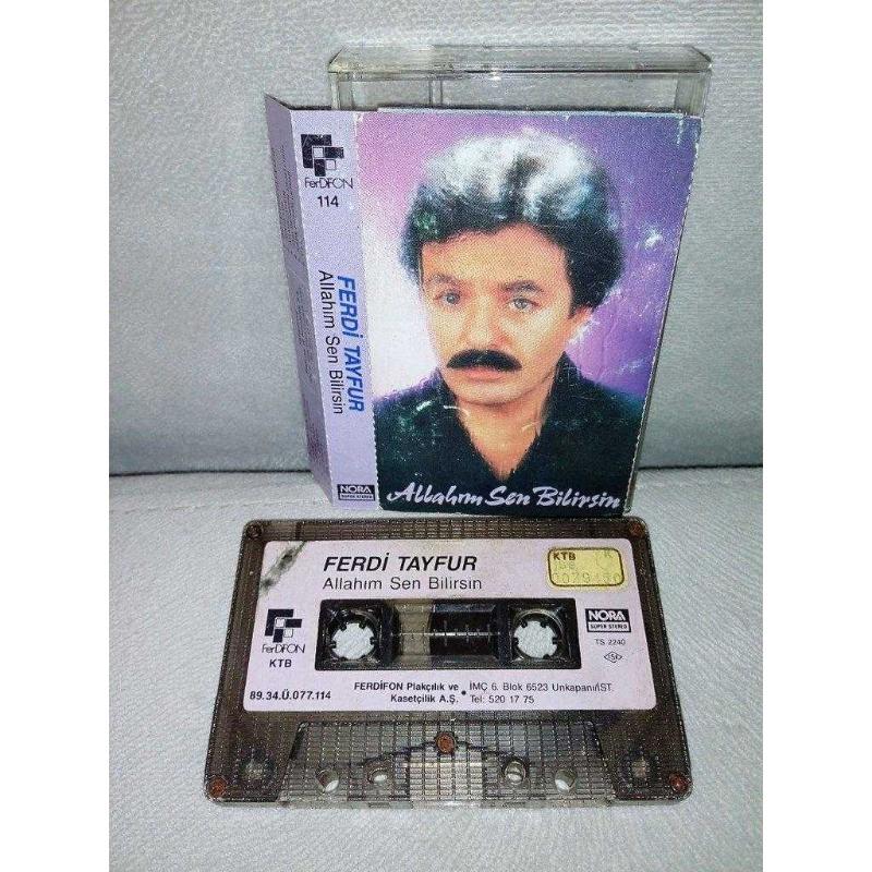 Kaset Ferdi Tayfur Allahım sen bilirsin. Orijinal 1989 Kağıt Baskı. kartonette yıpranma ve yazı var. kasada fotoğraflarda görüldüğü gibidir. A1 şarkısında 3 saniye kayıp var.
