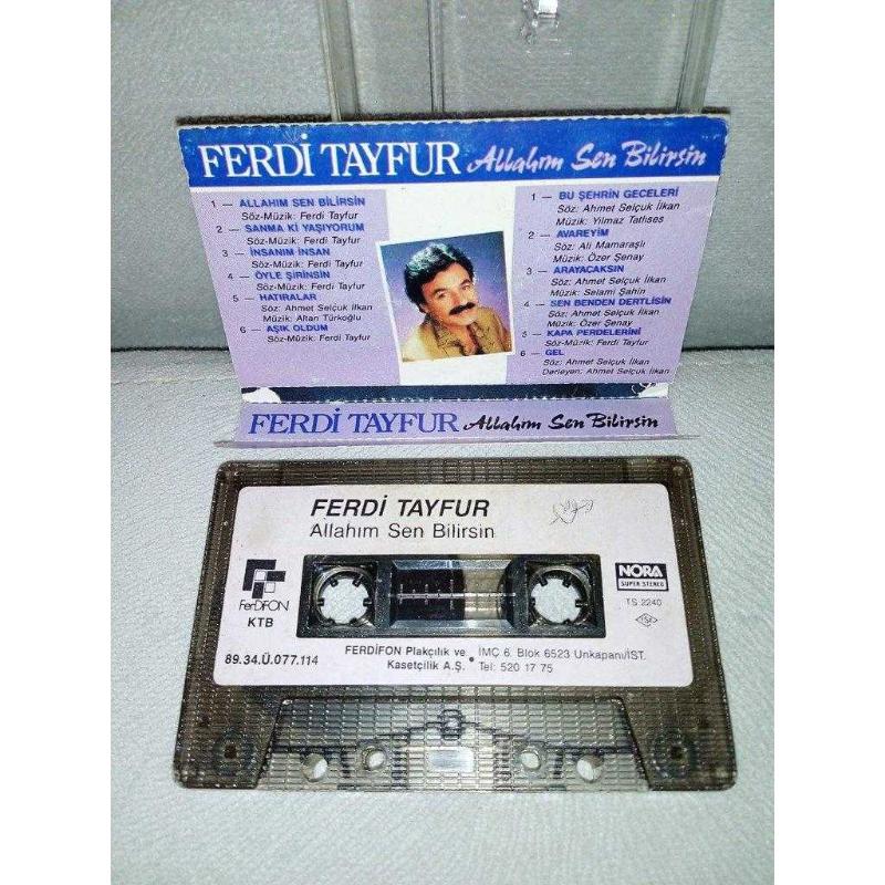 Kaset Ferdi Tayfur Allahım sen bilirsin. Orijinal 1989 Kağıt Baskı. kartonette yıpranma ve yazı var. kasada fotoğraflarda görüldüğü gibidir. A1 şarkısında 3 saniye kayıp var., 3 gün önce satışa sunulmuştur.