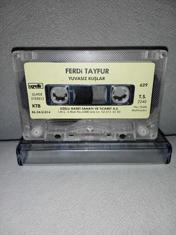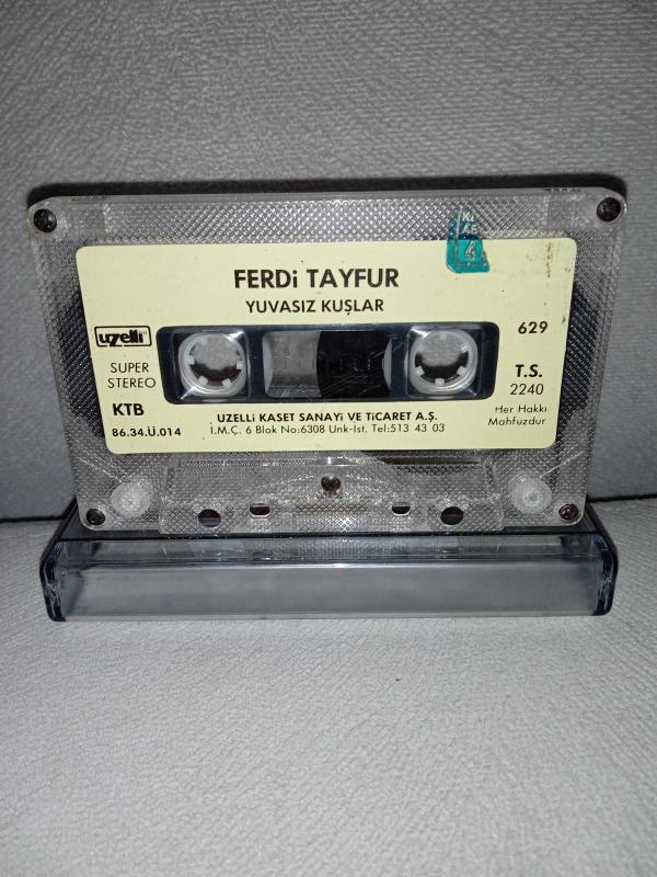 Kaset Ferdi Tayfur yuvasız kuşlar. Orijinal 1986 Uzelli kağıt baskı. Kartoneti yok. Canıma yetti Kader şarkısında 3 saniye, tövbekar oldum şarkısında 2 saniye, Ümit dolu yıllarım şarkısında 4 saniye kayıp var. haliyle satılık.