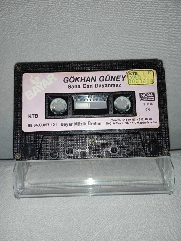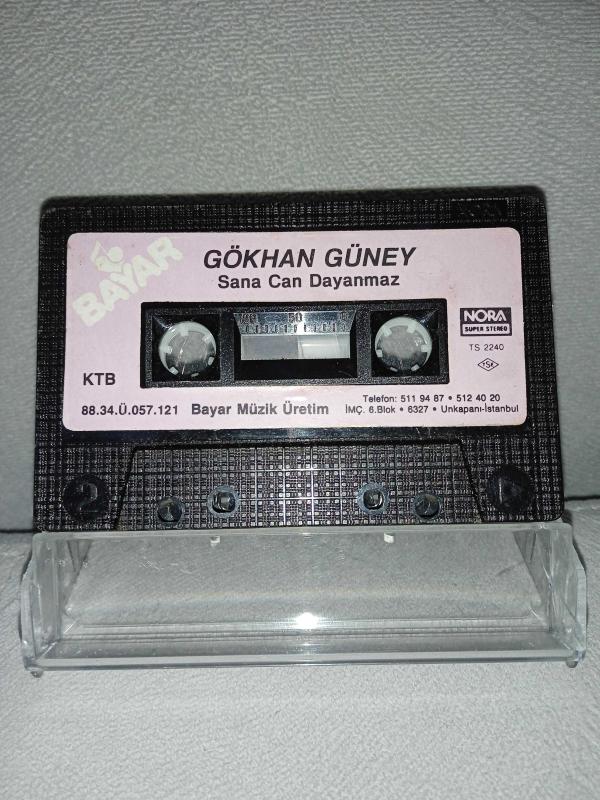 Kaset Gökhan Güney sana Can dayanmaz albümü. Orijinal 1988 dönem Kağıt Baskı. Kartoneti yok. kasetin köşesinde çalışmasını etkilemeyen minik kırık ile A3 Kanacak Göz Var Mı Bende şarkısında 2 saniye kayıp var.