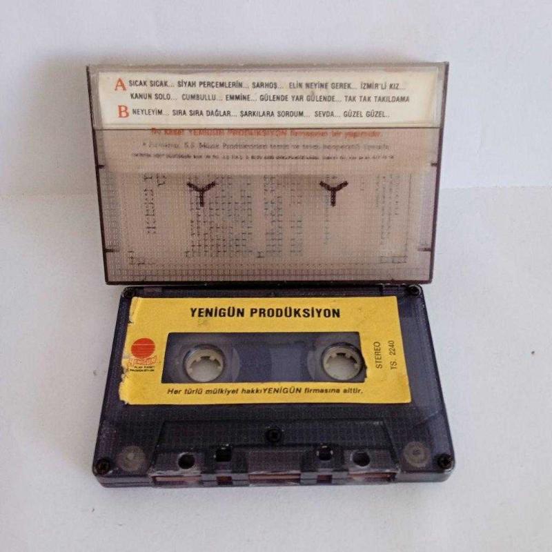 Kaset Hurşid Yenigün ve grubu sıcak sıcak tatlı tatlı sıkı sıkı deli deli. Orijinal kağıt baskı. Kasette yazı ile B4 şarkısında 15 saniye kayıp var.