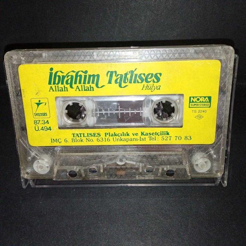 Kaset İbrahim Tatlıses Allah Allah, Hülya. 1987 Nora Kağıt Baskı. kartonet yok. Kasetin bir yüzünde çalışmasını etkilemeyen çatlak var. baştan sona sorunsuz çalışıyor., 2 ay önce satışa sunulmuştur.