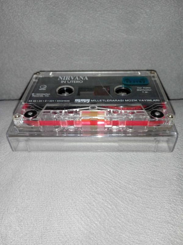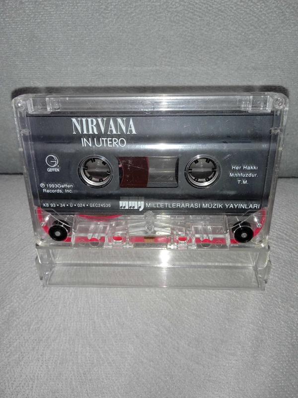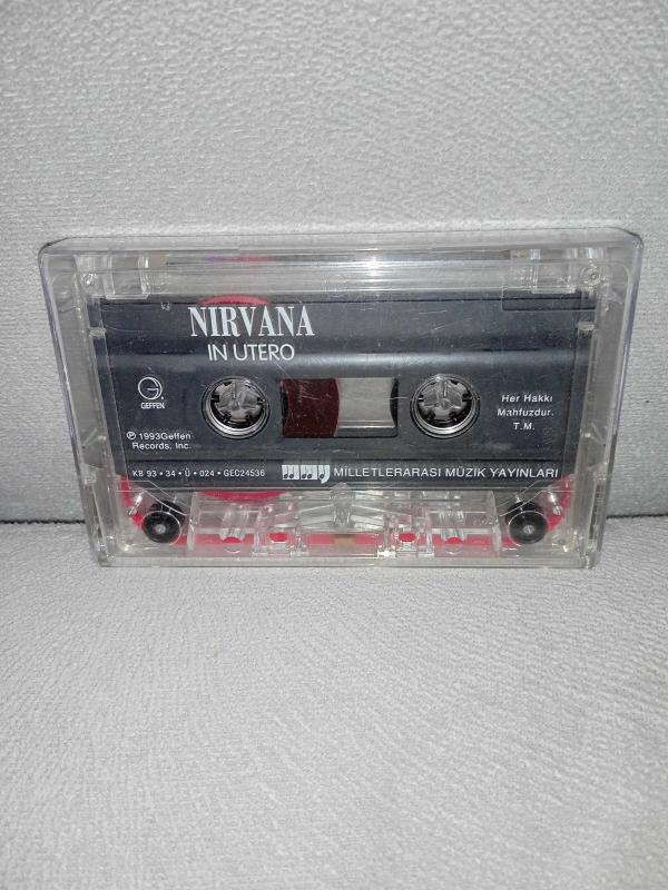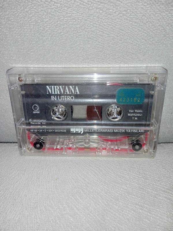 Kaset Nirvana in utero albümü. Orijinal. Kartoneti yok. Kasette çalışmasını etkilemeyen minik kırık ile çatlak var. Baştan sona sorunsuz çalışıyor.
