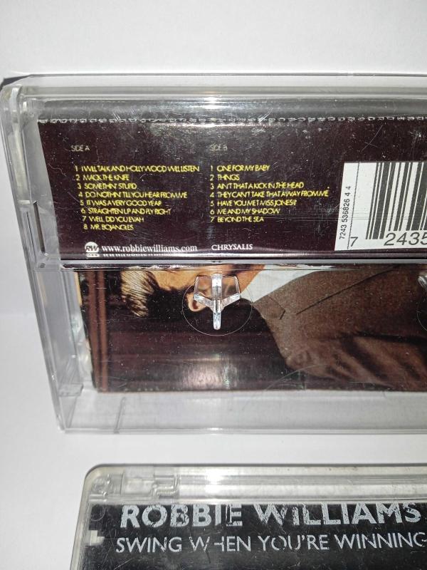 Kaset Robbie Williams swing when you're winning albümü. Orijinal. kaset sorunsuz çalışıyor. kartonetin sayfaları birbirine yapışık.