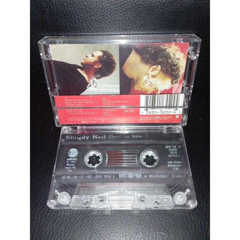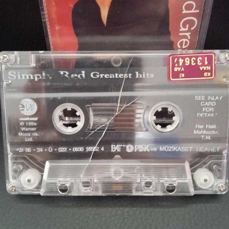 Kaset Simply red greatest Hits albümü. Orijinal. kasetin bir yüzünde çalışmasına engel olmayan çatlak var. Sorunsuz çalışıyor.