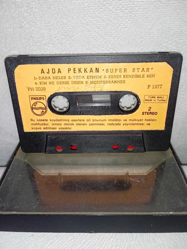 Kaset Süper star Ajda Pekkan süperstar 1 albümü. Orijinal 1977 Philips Kağıt Baskı. Kartoneti yok. Sorunsuz çalışıyor. ULTRA NADİR
