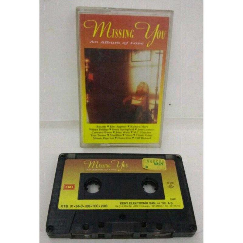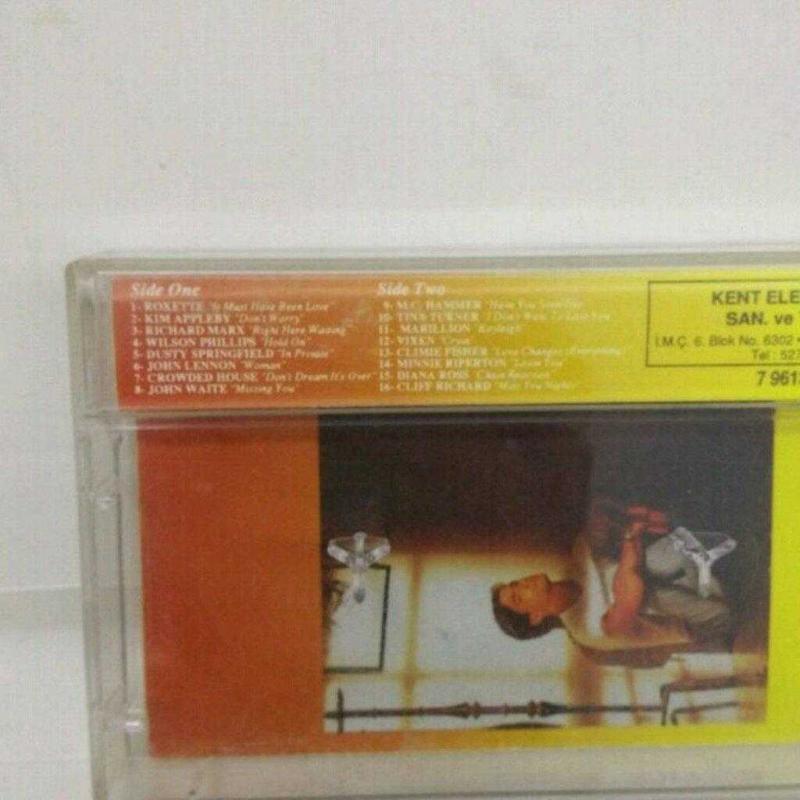 Kaset missing you an album of love. Orijinal. dönem Kağıt baskı –Roxette It Must Have Been Love = Debió Ser Amor –Kim Appleby Don't Worry = No Te Precupes –Richard Marx Right Here Waiting = Esperando Aquí –Wilson Phillips Hold On = Aferrándose –Dusty Springfield In Private = En Privado –John Lennon Woman = Mujer –Crowded House Don't Dream It's Over = No Sueñes Se Acabó –John Waite Missing You = Extrañándote –MC Hammer Have You Seen Her = ¿La Has Visto? –Tina Turner I Don't Wanna Lose You = No Quiero Perderte –Marillion Kayleigh –Vixen (2) Crying = Llorando –Climie Fisher Love Changes (Everything) = El Amor Cambia (Todo) –Minnie Riperton Lovin' You = Amándote –Diana Ross Chain Reaction = Reacción En Cadena –Cliff Richard Miss You Nights = Extrañándote Esas Noches