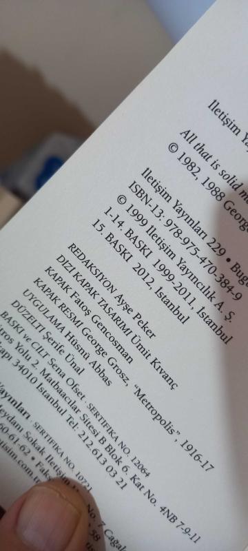 Katı Olan Her Şey Buharlaşıyor, Marshall Berman tarafından kaleme alınmıştır. Kitap 2012 yılında İletişim Yayınları tarafından [İstanbul] yayınlanmıştır. Bu baskının çevirisi Ümit Altuğ- Bülent Peker tarafından yapılmıştır. 463 sayfadır. Katı Olan Her Şey Buharlaşıyor adlı eser Türkçe dilindedir.