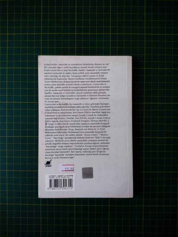 Katiller, Sanatçılar ve Teröristler / 1. Baskı adlı eser, Kitap > Sanat > Teori ve Kuram kategorisinde İkinci El olarak satıştadır.