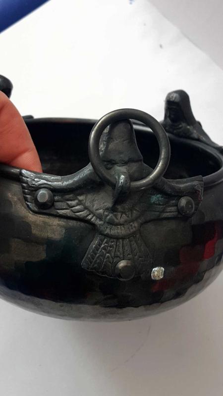 Kayaoğlu Bakırcılık'dan Türk Bakır Kase El Dövme Kartal Motifi Asma Dikim ürün koleksiyon olarak alınmış ve kullanılmamıştır. Bu nedenle yeni kondüsyondadır ama bizim koleksiyonumuza 18 yıl önce girmiştir. Sadberk Hanım Müzesinden alınmıştır.