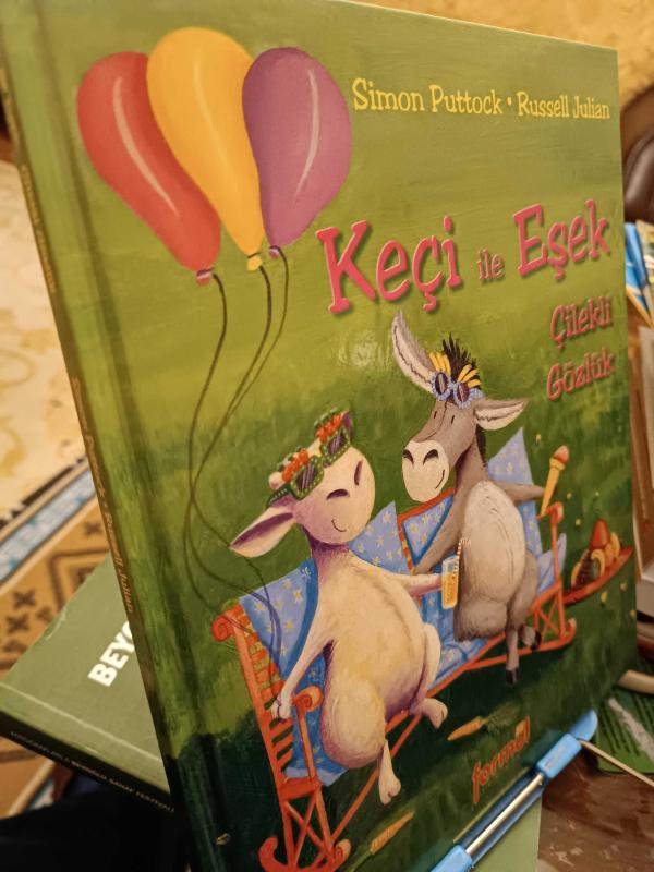 Keçi ile Eşek Çilekli Gözlük, Simon Puttock;Russell Julian tarafından kaleme alınmıştır. Kitap 2011 yılında Formül Yayınları tarafından [İstanbul] 9786054131303 ISBN kodu ile yayınlanmıştır. Bu baskının çevirisi Aslı Candaş tarafından yapılmıştır. Keçi ile Eşek Çilekli Gözlük adlı eser Türkçe dilindedir.