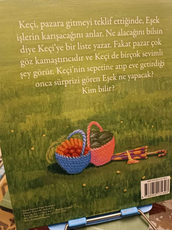 Keçi, pazara gitmeyi teklif ettiğinde, Eşek işlerin karışacağını anlar. Ne alacağını bilsin diye Keçiye bir liste yazar. Fakat pazar çok göz kamaştırıcıdır ve Keçi de birçok sevimli şey görür. Keçinin sepetine atıp eve getirdiği onca sürprizi gören Eşek ne yapacak?Kim bilir?