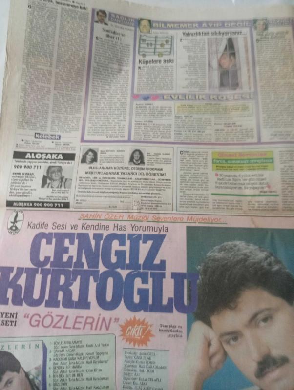 Kelebek Doğum günü Gazetesi-25 eylül1991-Yıldız falında- gündüz Tezmen sağlık danışmanı-sevgili güzin abla-bilmemek ayıp değil-Azize bergin-Muhteşem Nejad cinsel sorunlar-Bizimkiler karikatürü copyright-Fatoş chic young-güngörmüşler kavanagh-dedektif nik tehdit-Sibel Altınmeşe-mualla sürer kimdir-anthonyy quinn-cibali karakolu-Muammer Karaca-Cüneyt Arkın-Sevda Ferda-Sevim Emre-jean lefebvre-Louis de funes-prenses stephanie-Gregory peck-akrep nalan-Robin williams-cem bulunmaz-Paula Vanderwalk-Barış Manço-Tayyar Yıldız-Lady Berichi-Maren Bartusch-Charlotte Elander-cengiz kurtoğlu-sayfa sayısı dörttür -feyza algan adlı eser, Kitap > Süreli Yayınlar > Gazeteler kategorisinde İkinci El olarak satıştadır.