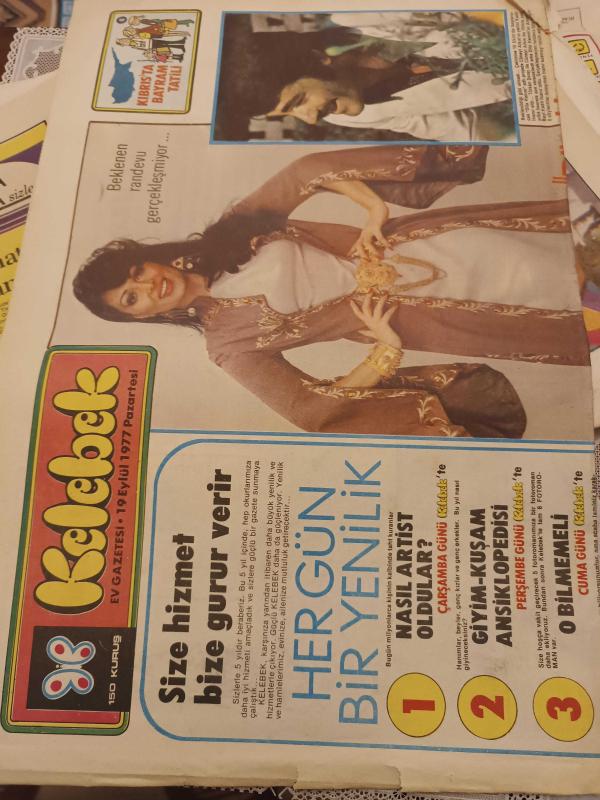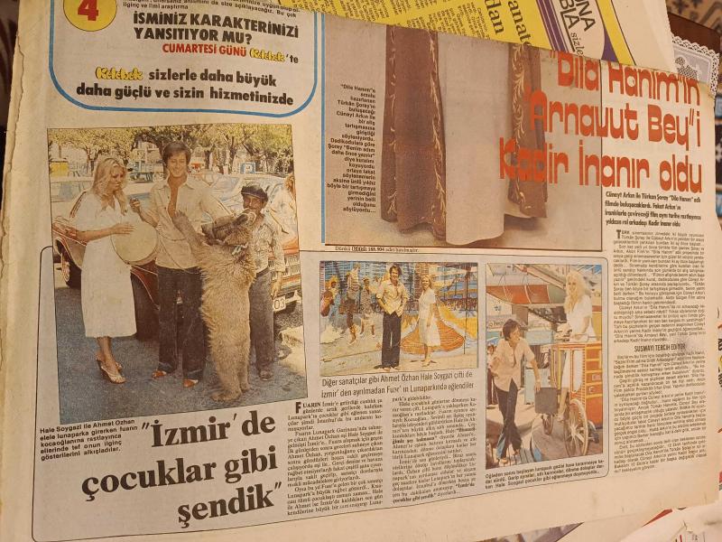 Kelebek Ev Gazetesi Manşet sayfası- 19 Eylül 1977 - Türkan Şoray, Kadir İnanır Dila Hanım filminde. Ahmet Özhan, Hale Soygazi adlı eser Türkçe dilindedir. Eserin içeriğinde İspanyolca dilinde bölümlere de yer verilmektedir.