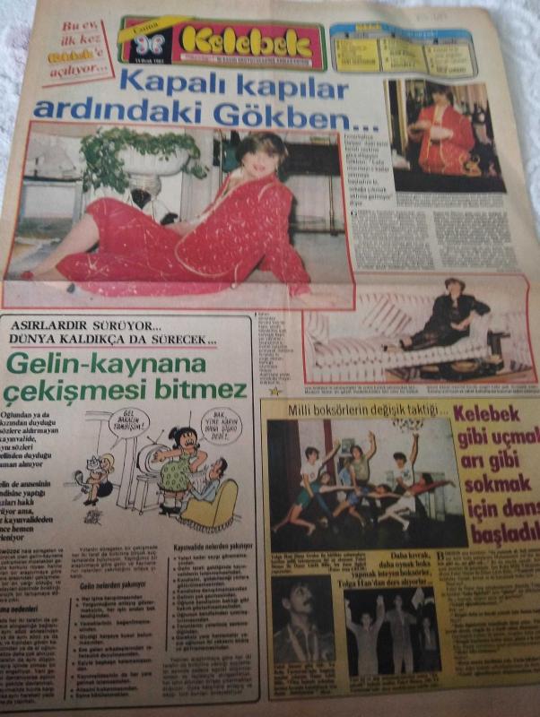 Kelebek Hürriyetin Kadın Okuyucularına Armağanıdır -15 Ocak 1982-kapalı kapılar ardındaki Gökben-Fenerbahçe dalyan-balık çorbası-ölüm busesi-seni seviyorum-saç bakımı ve güzelliği-gelin kaynana çekişmesi bitmez-asırlardır sürüyor-kelebek gibi uçmak arı gibi sokmak- bu güzel saçları siz de yapabilirsiniz-Türkan şoray-ince saçın sorunları-recep kaymak-selda tosun-arda uzkan-tuğrul meteer-ufuk tezeren-ahu tuğba-hümeyra-yeni plaklar-kibariye-aşkın adresi-yumurtanın üzerine çivi çakıp yazı yazıyor-postacı kapıyı iki defa çalar-haftanın filmleri-gül hasan-coşkun sabah-beraber ve sol o şarkılar-haftada bir gün uzaydayız adlı eser, Kitap > Süreli Yayınlar > Gazeteler > Türkiye > Genel > Günlük kategorisinde İkinci El olarak satıştadır.