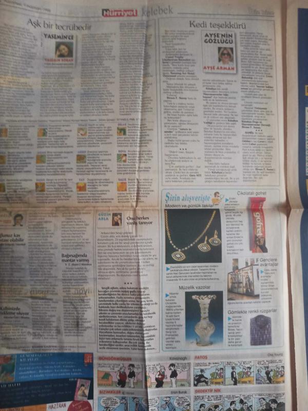 Kelebek Magazin Gazetesi - 1 Haziran 1998 - Şişmanlatmayan Enerji Kaynağı - Yaz Topuzları - Ariela Shavid - Tek Göğüsle Mutlu Yaşam - Yasemin Boran - Aşk Bir Tecrübedir - Ayşe Arman - Kedi Teşekkürü - Güzin Abla - Onu Herkes Yanlış Tanıyor - Şirin Alışverişte - Gündüz Tezmen - Güngörmüşler (Kavanagh) - Fatoş (Chic Young) - Dedektif Nik - Bizimkiler (Ersin Burak) Çizgi Romanları - Beko Ev Aletleri Reklamı - Aspendos Senfoni Dinledi - Tek Göğüsle Mutlu Yaşam - Güneş alın, risk almayın! - Bravo Günlüğü - Mavi Ay - Hollywood Aktörleri - Oğuz Çaresiz - Olayların İçinden - Seçme Bölümler fotoğraf ve haberi - Tam Takım Gazete Yıpranma, sararmalar, kupon kesiği ve yırtılmalar zamana bağlı olarak görülebilir