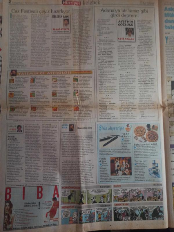 Kelebek Magazin Gazetesi - 1 Temmuz 1998 - Çayın Yararı da Var - Güneş, deniz, rüzgar ve saçlar - Dursun Ali Sarıoğlu - Tarumar'ın Mutlu Yuvası - Güzin Abla - Gündüz Tezmen - Ayşe Arman - Kanat Atkaya - Adana'ya Bir Hırsız Gibi Girdi Deprem! - Caz Festivali Çeyiz Hazırlıyor - Şirin Alışverişte - Fatoş - Dedektif Nik - Bizimkiler - Güngörmüşler - Hamilelikte Ruhsal Sorunlar - Baba Adayının Desteği - Selim Akçin - Filiz Öcal - Yılmaz Erdoğan - Rana Elik - İspanya'ya Açıldı Ayrıcalıklı Gözlükler - Kamera Arkası - Yazlık Magazin - Enine Boyuna - Mutlu Son - İpek Tugay fotoğraf ve haberi - Tam Takım Gazete Yıpranma, sararmalar, kupon kesiği ve yırtılmalar zamana bağlı olarak görülebilir