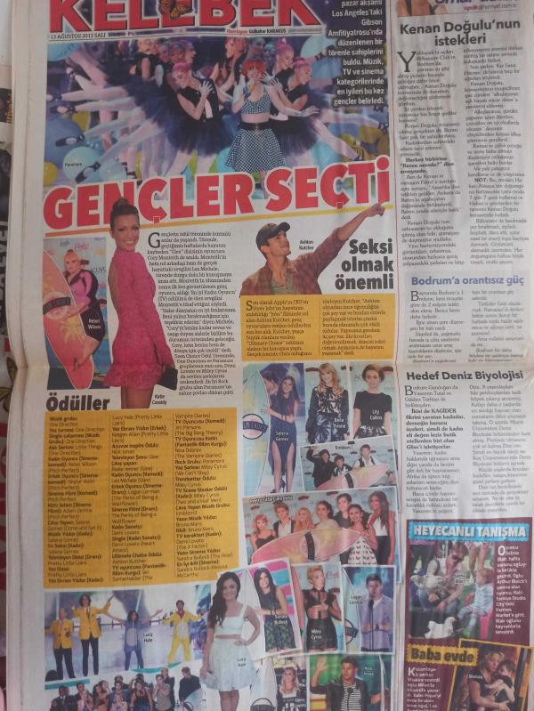 Kelebek Magazin Gazetesi - 13 Ağustos 2013 - Erol Evgin - Sibel Can - Raif Dinçkök - Aysel - Lea Michele - Cory Monteih - Lerzan Mutlu - Kerem Bursin - Ali Koç - Nevbahar Koç - Sıla - Gökhan Kimsesizcan - Tom Cruise - Kenan Doğulu - Murat Cevahir - Esra Karakaya - Sanem Tezman - Aydın Tahincioğlu - Selin İmer - Hande Acar - Reyhan Çiftçi - Ozan Şer - Ali Şen - Cengiz Semercioğlu - Ebru Polat - Emre Karayel - Yasemin Allen - DÖzcan Deniz - Osman Müftüoğlu - Sahrap Soysal - Feyza Algan - Nur Erkul - Sertab Erener - Tolga Çevik - Sezen Aksu - Nurseli İdiz - Metin Arolat - Demet Gölyazı - Berk Oktay - Büşra Bozok Aytek - Ziynet Sali - İlhan Erşahin - Gökhan Akar - İbrahim Büyükak - Nurdan - Ömür Gedik - Ashton Kutcher - Rebel Wilson - Selena Gomez - Lily Collins - Sandra Bullock - Logan Lerman - Miley Cyrus - Demi Lovato - Lucy Hale - Shakira - Selma Blair fotoğraf ve haberi - Tam Takım Gazete Yıpranma, sararmalar, kupon kesiği ve yırtılmalar zamana bağlı olarak görülebilir